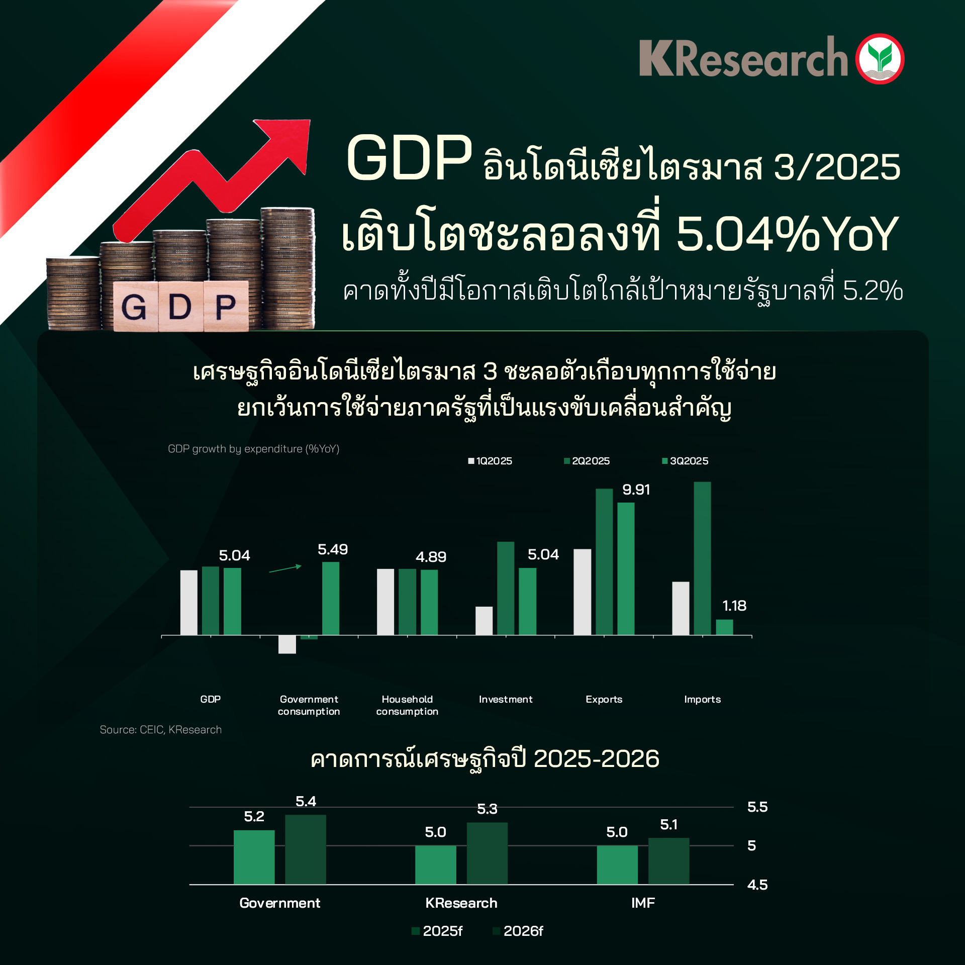 ไตรมาส 3/2025 GDP อินโดนีเซียเติบโตชะลอลงที่ 5.04%YoY ขณะที่ค่าเงินรูเปียห์อ่อนค่าลงอย่างต่อเนื่อง เงินทุนยังไหลออกและดุลบัญชีเดินสะพัดเสี่ยงกลับมาขาดดุล