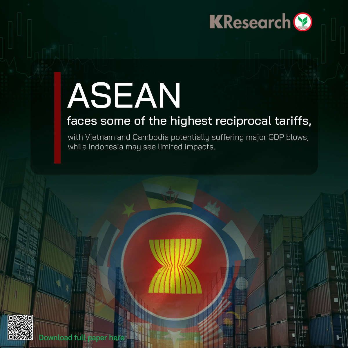 • The US reciprocal tariffs may severely impact the regional economy, based on each country’s reliance on exports to the US and the export dependency of its economy, with Vietnam and Cambodia facing the greatest risk.