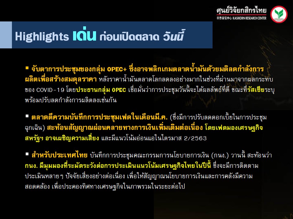 สรุปความเคลื่อนไหวของตลาดเงิน ตลาดทุนประจำวันนี้