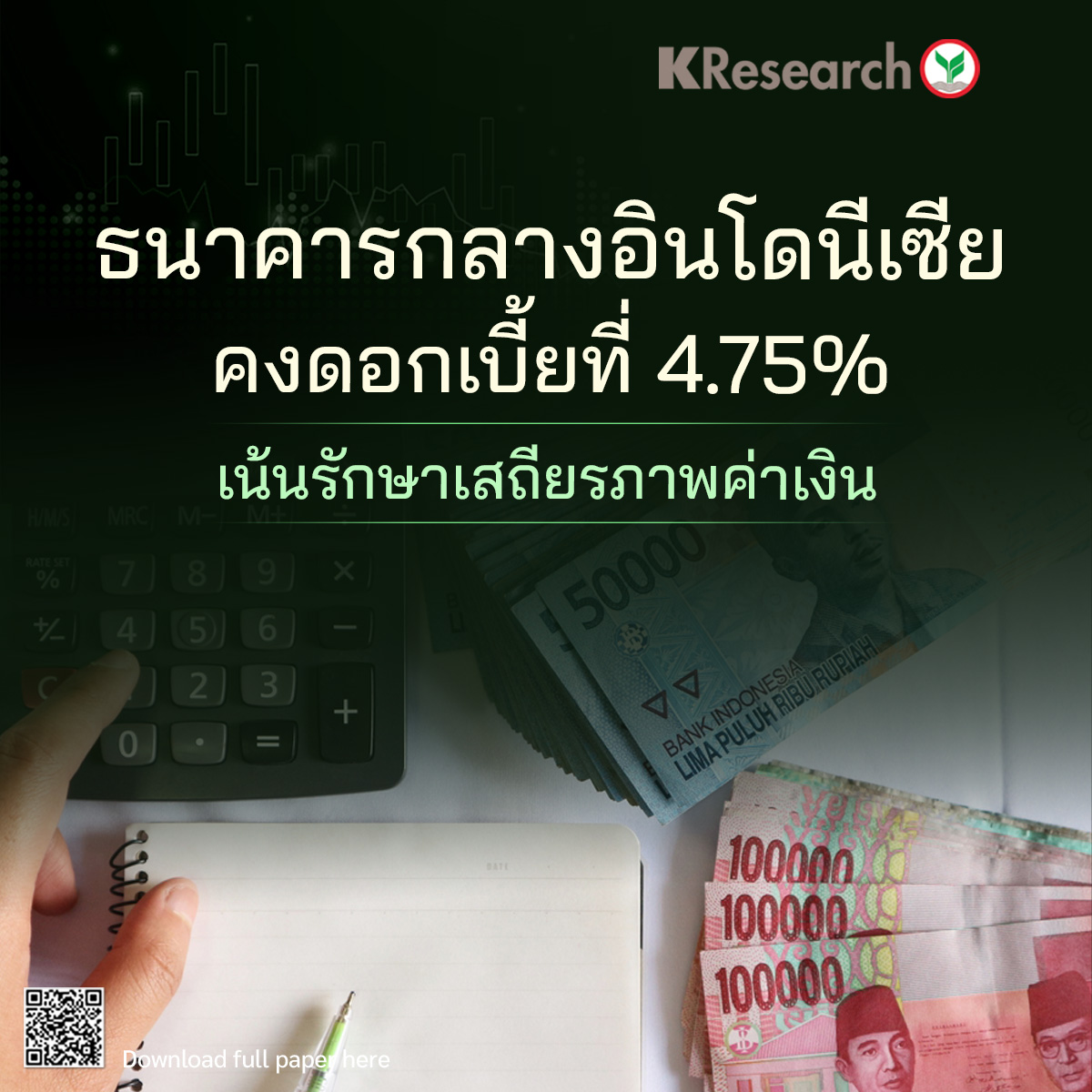 ภายใต้สถานการณ์ดังกล่าว ศูนย์วิจัยกสิกรไทยมองว่า BI มีแนวโน้มลดดอกเบี้ยได้อีกอย่างน้อย 2 ครั้งในช่วงครึ่งแรกของปี 2026 หากค่าเงินรูเปียห์เริ่มมีเสถียรภาพ เงินเฟ้อยังอยู่ในกรอบเป้าหมาย และแรงกดดันจากเงินทุนไหลออกทยอยคลี่คลาย