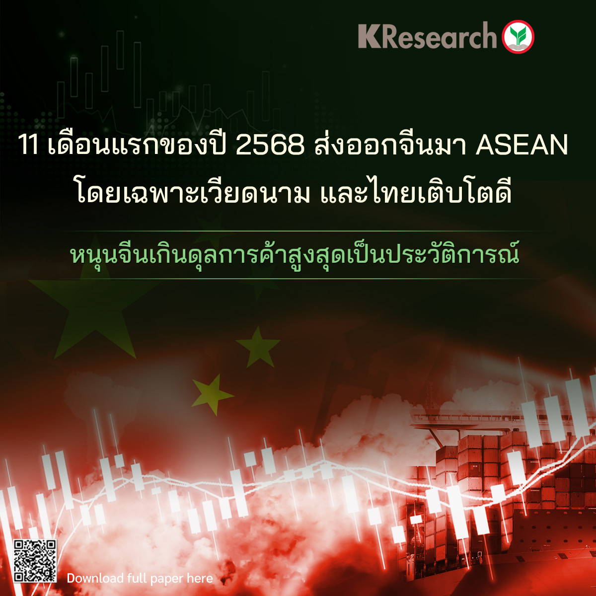 o ศูนย์วิจัยกสิกรไทย มองว่า ในปี 2569 การส่งออกจีนมีความเสี่ยงที่ชะลอลง โดยเผชิญความท้าทายหลายด้าน ดังนี้