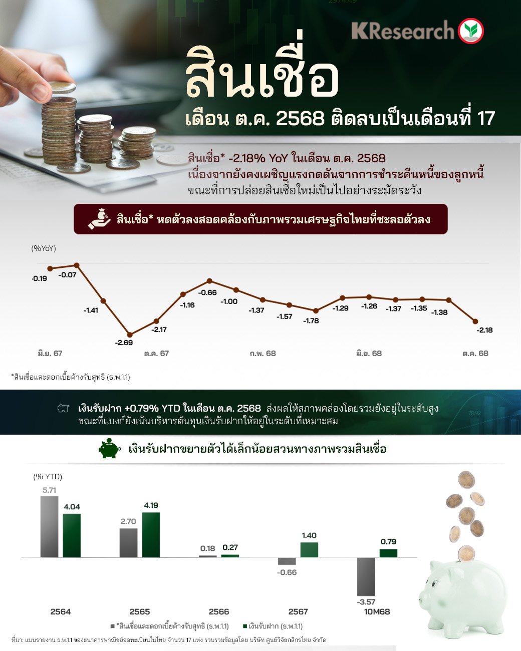 สินเชื่อเดือน ต.ค. 2568 ติดลบเป็นเดือนที่ 17