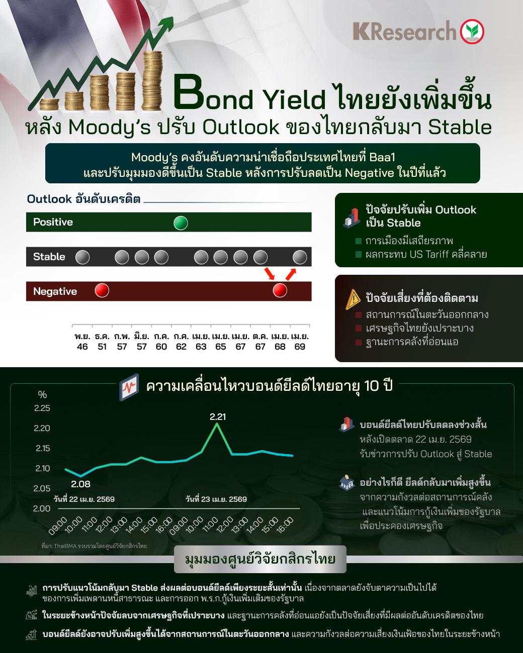 Bond Yield ไทยยังเพิ่มขึ้น หลัง Moody’s ปรับ Outlook ของไทยกลับมา Stable