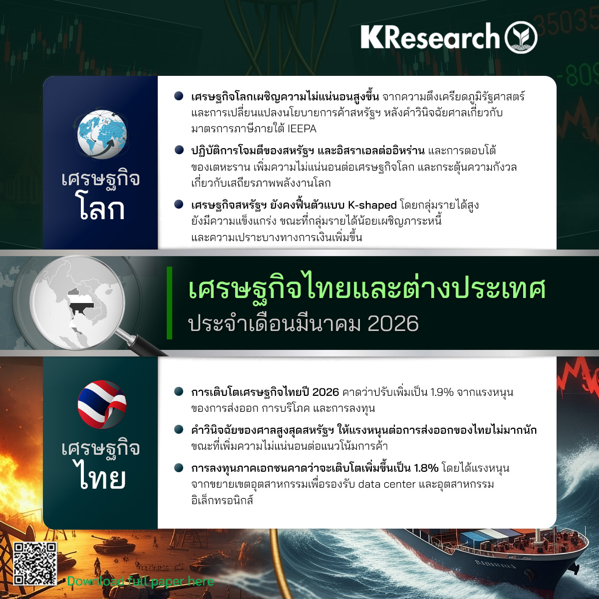 รายงานภาวะเศรษฐกิจไทยและต่างประเทศ ประจำเดือนมีนาคม 2026