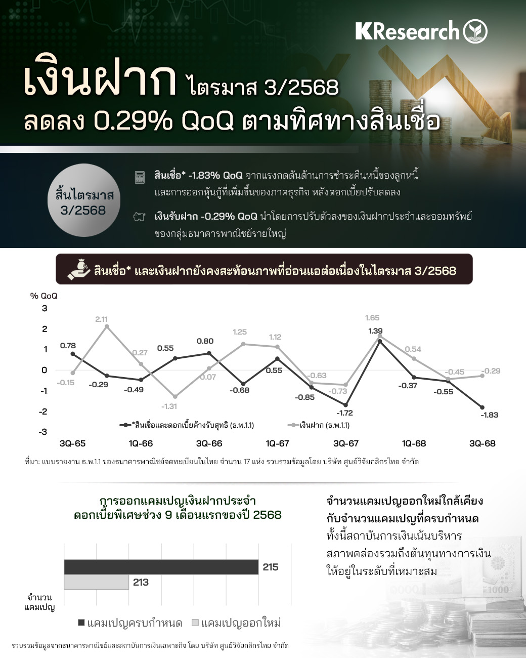 สรุปข้อมูลสินเชื่อและเงินฝากของธนาคารพาณิชย์ไทย 17 แห่ง ณ สิ้นไตรมาส 3/2568
